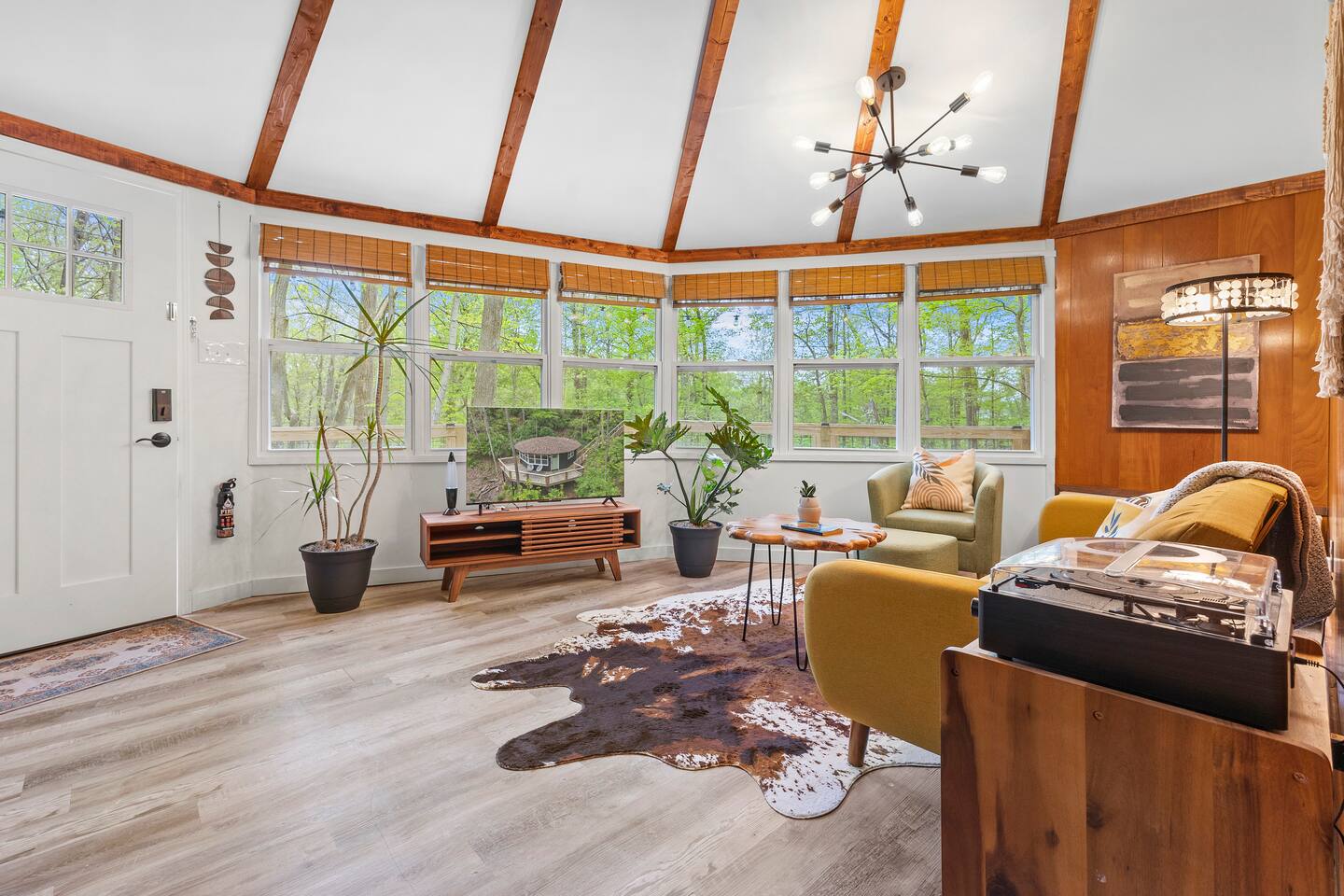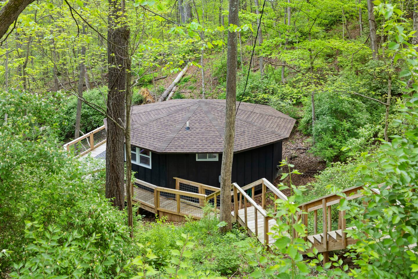 Bristol Tiny Round Treehouse – A Unique Bristol, VA/TN Retreat! Nestled in a wooded haven 2 miles from Hard Rock Casino 🎰, Historic Downtown Bristol 🌆 and a quick drive to Bristol Motor Speedway 🏁 this 500 sf treehouse is a cozy getaway in Bristol, a city straddling VA/TN. Reached by 38 steps, it’s ideal for active adults. Enjoy nature and urban charm, perfect for couples or solo travelers. Book this enchanting retreat for a memorable escape!