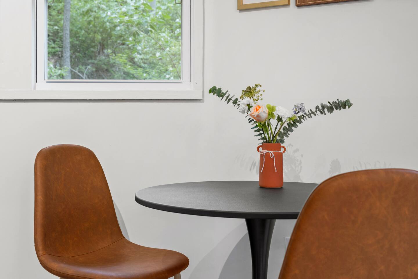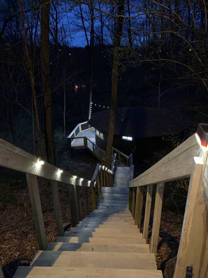 To ensure a safe and enjoyable stay at the Bristol Tiny Round Treehouse, the following safety measures are in place: *Access via Stairs: The treehouse is reached by 38 well-lit steps with 2 landings, designed for active adults. Lighting along the stairs enhances visibility at night, reducing the risk of trips or falls. However, the descent may not be suitable for those with mobility challenges, elderly guests, or individuals with walking impairments, so please assess your comfort with stairs before booking. *Stay on Designated Areas: Guests are required to remain on the deck and stairs, as the surrounding grounds feature steep, wet, and irregular terrain due to a natural spring. This restriction prevents slips, falls, or injuries on the challenging landscape. Clear signage and the house rules reinforce this guidance. *Due to the layout of the treehouse situated on a steep lot with no access to the grounds, this property is not suitable for pets or domesticated animals.